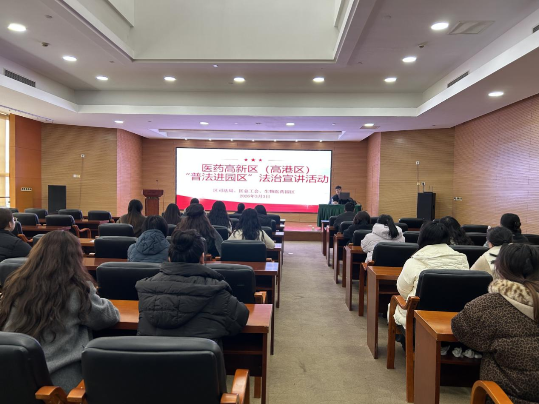 3月3日,医药高新区(高港区)司法局、泰州市高港区总工会在CMC大楼举办了一场以“情系女工 法在身边”为主题的迎“3·8妇女节”普法宣传活动,讲座邀请江苏长京律师事务所刘春圣律师进行专题授课。医药园区企业女职工、女干部代表近百人等参加了此次活动。