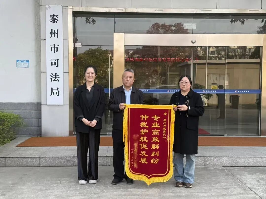 日前,某国有企业代表专程向泰州仲裁委送上锦旗,感谢泰州仲裁委开通快速通道、22天依法办结一起标的额超2亿元的案件,解决企业燃眉之急。