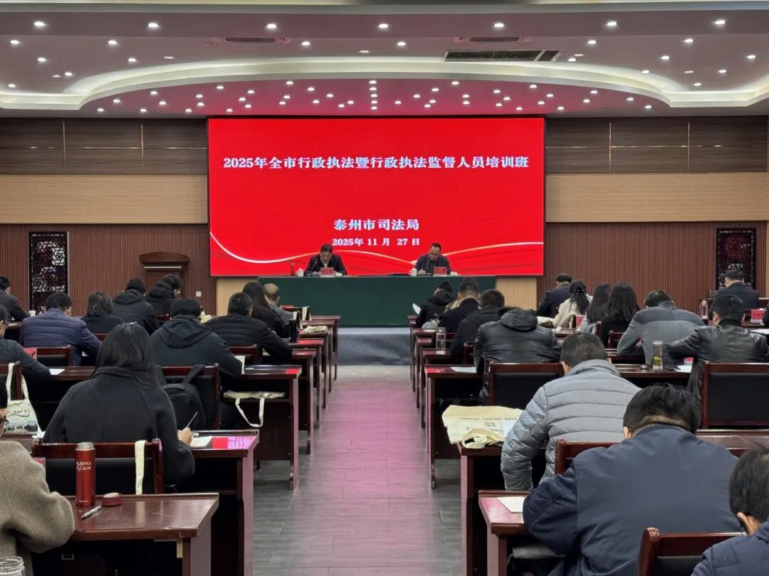 为深入学习贯彻习近平法治思想,全面提升全市行政执法与监督队伍的专业能力,11月27日—28日,市司法局在泰兴市祁巷村乡村振兴学堂举办2025年度全市行政执法暨行政执法监督人员培训班,市级执法部门行政执法和行政执法监督相关处室负责人、各市(区)司法局行政执法协调监督分管负责人及科室业务骨干共计76人参训。